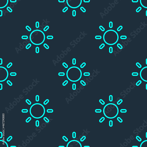 Green line Sun icon isolated seamless pattern on blue background. Vector
