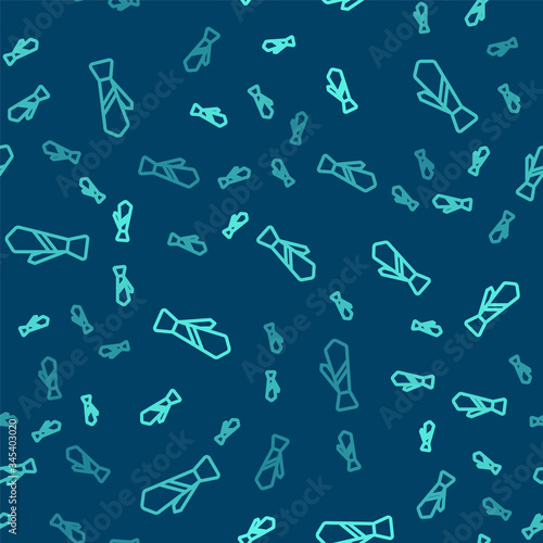Green line Tie icon isolated seamless pattern on blue background. Necktie and neckcloth symbol. Vector Illustration