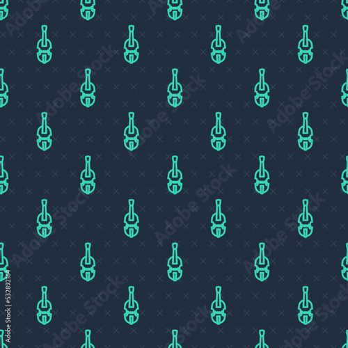 Green line Violin icon isolated seamless pattern on blue background. Musical instrument. Vector