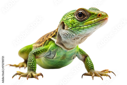 Green Lizard with Detailed Scales on Black Background