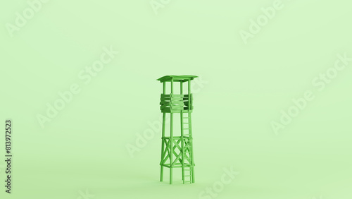 Green lookout tower watchtower observation wooden structure soft tones mint background 3d illustration render digital rendering