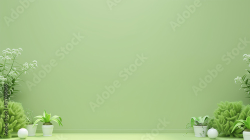 Green modern minimalistic interior background wall mockup 3d render