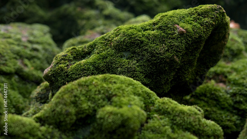 Green moss on the rocks under the waterfall at the beautiful natural mountain.