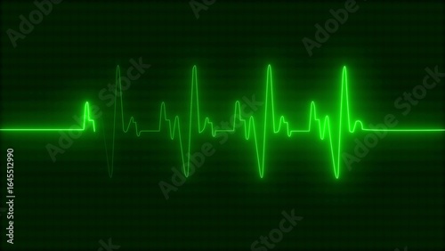 Green Neon Heartbeat Line Graph on Dark Background cardiogram pulse