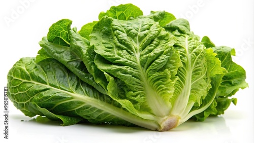 Green organic lettuce romaine isolated on white background Low angle view, isolated, healthy, nutrition, green leaf, low angle, romaine, crisp, close-up, food, green salad, vegan