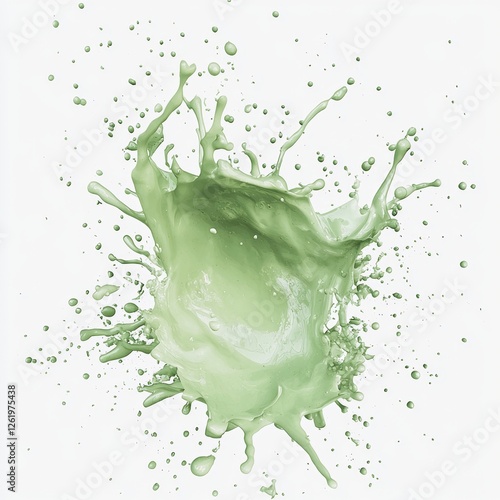 Green Paint Splash Isolated on White Background with Dynamic Drips and Splashes Capturing Energy and Creativity