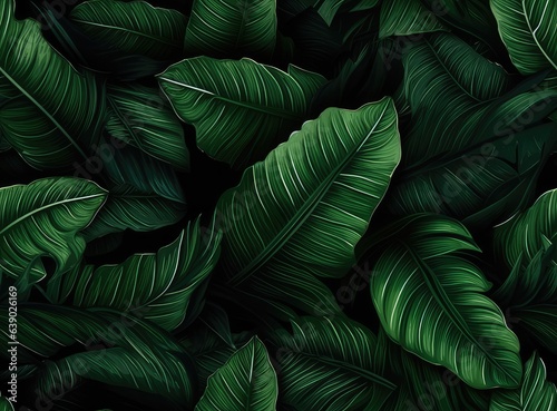 Green palm leaf pattern texture abstract background. Tropical palm leaves, floral pattern background. SEAMLESS PATTERN. SEAMLESS WALLPAPER.