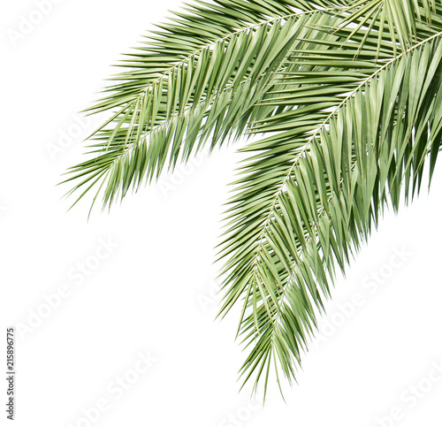 Green palm leaves isolated on white background