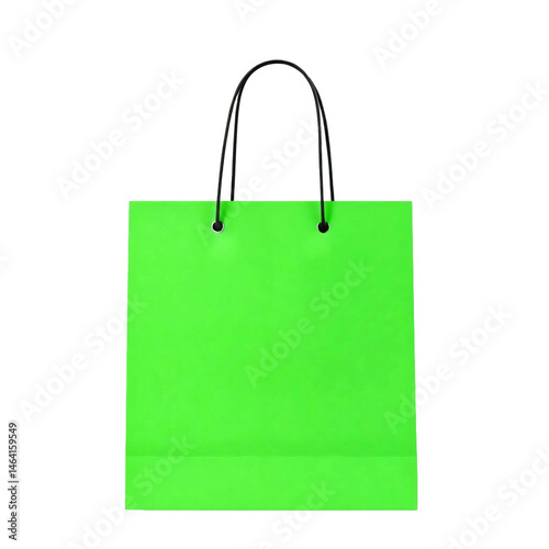 Green paper shopping bag mockup with black handle isolated on transparent background