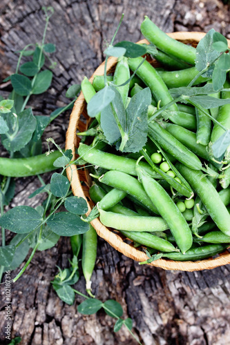 Green peas on an old stump
