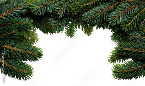 Green Pine Tree Branches with Fresh Needles Isolate on Transparent Background, cutout, png