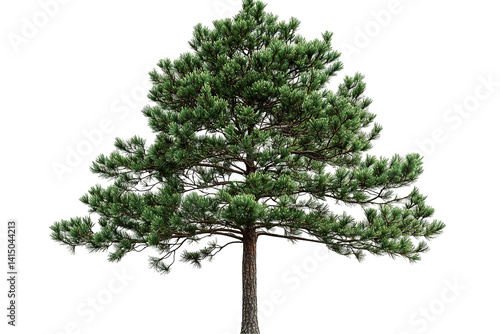 Green pine tree. Detailed needles and branches against a transparent background