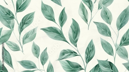 Green plant and leafs pattern. Pencil, hand drawn natural illustration. Simple organic plants design. Botany vintage graphic art. 4k wallpaper, background. Simple, minimal, clean design.
