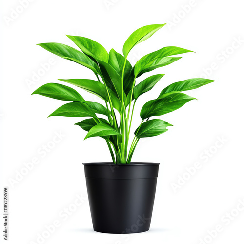 Green plant in black pot, white isolated background