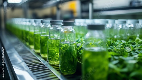 Green Plants Growing In Glass Jars In A Laboratory Setting