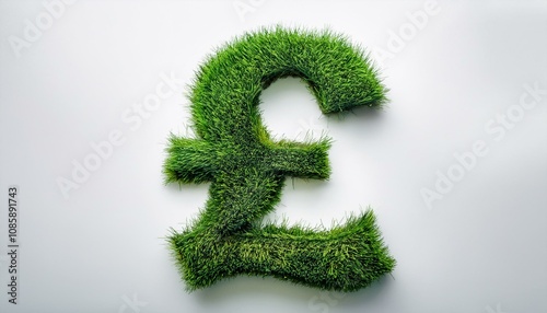 Green Pound symbol made entirely of green grass. Sustainability and eco-finance concept, green loan and green mortgage concept.