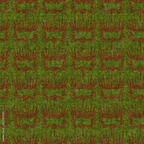 Green retro 1960s linen seamless pattern. Forest style vintage for decorative backdrop. Mid century moss old-fashioned geometric design.
