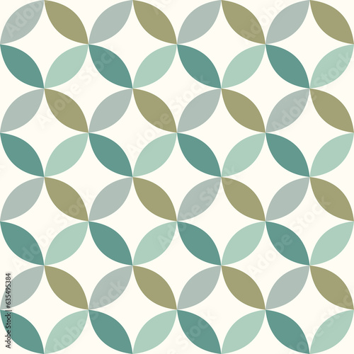 green Seamless geometric pattern of circles on white background. Simple geo pattern. Clothing fabric print. Seamless trellis background