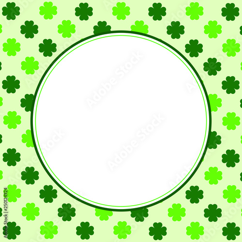 Green seamless pattern with clovers, shamrock leaves for St. Patrick's Day. Holiday symbol with frame, border for text, for greeting cards, banner or invitation