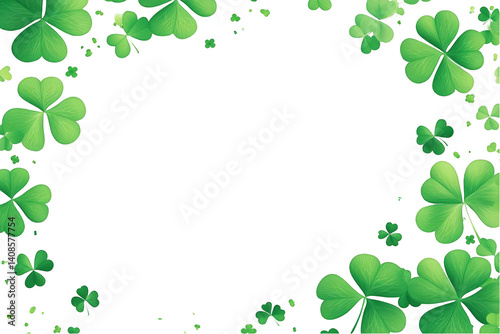 Green Shamrock Leaves Border on Transparent Background Illustration