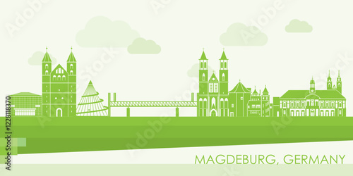 Green Skyline panorama of city of Magdeburg, Germany - vector illustration