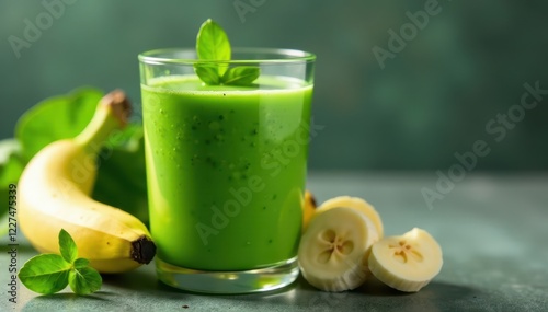 Green smoothie with spinach, kale, and banana, antioxidants, kale