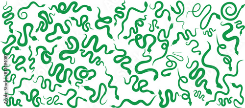 Green snake vector illustration shows various snake shapes, reptile vector design, nature, wildlife, serpentine, wavy, decorative, eco friendly animal silhouette