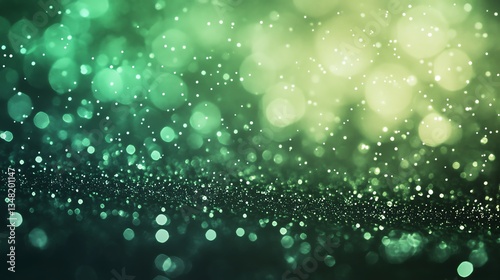 Green Sparkling Bokeh Background with Glittering Lights and Soft Focus