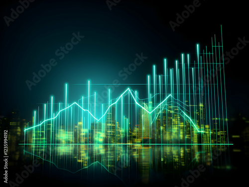 Green Stock Market Graph Showing Upward Trend on a Blue Background, Representing Economic Growth and Investment Opportunities