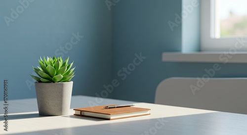 Green Succulent Plant on Desk with Notepad and Pen in Natural Light