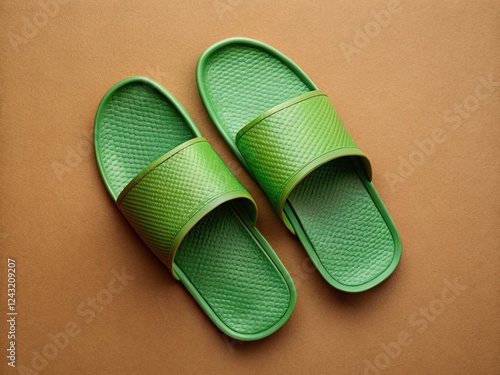 Green Summer Slippers on Brown Background - Surabaya Vacation, December 2024