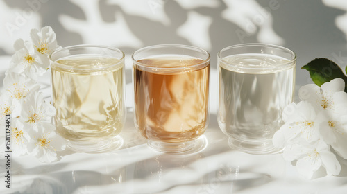 green tea, black tea, white tea, and oolong tea in elegant glass cups