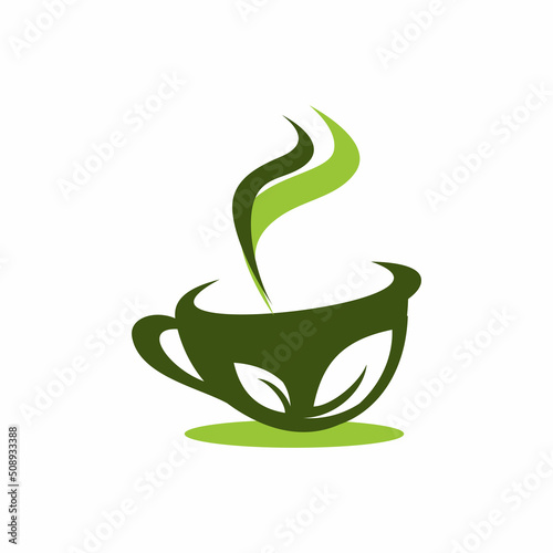 Green tea cup with leaves logo design icon