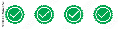 Green tick mark icon on white background. White tick on green circle set. Vector check mark on isolated white paper. Checklist vector icon set of 4. EPS 10.