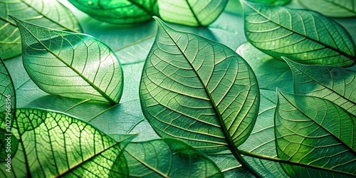 Green Translucent Glass Leaves Background with Textured Veins for Nature-Inspired Designs and Aesthetic Decor