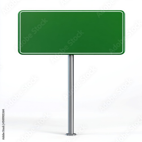 Green travel road sign with pole on white background
