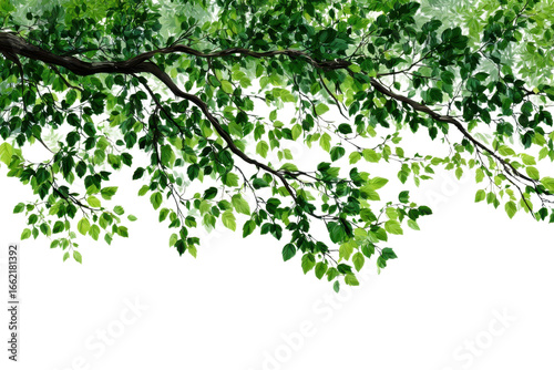 Green tree branches with leaves isolated on transparent background. Natural green leaf and large tree branch. Garden, park, forest, Spring design elements, PNG