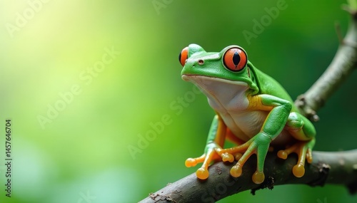 Green tree frog, perched on white, vibrant detail, isolated frog, amphibian
