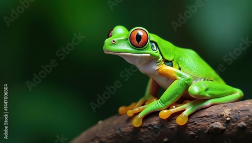 Green tree frog perched on white, vibrant skin, herpetofauna, biology