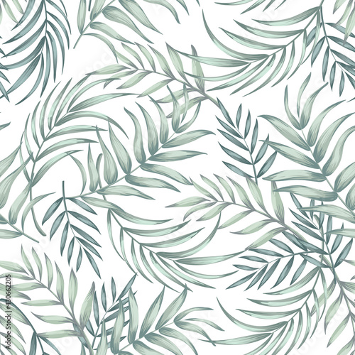 Green tropical palm leaves seamless vector pattern on the black background.Trendy summer print.