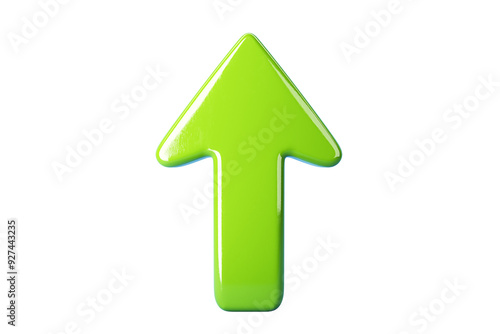 Green upward arrow isolated on a white background. Clean and glossy design. Concept of direction and rise. 3D Rendering
