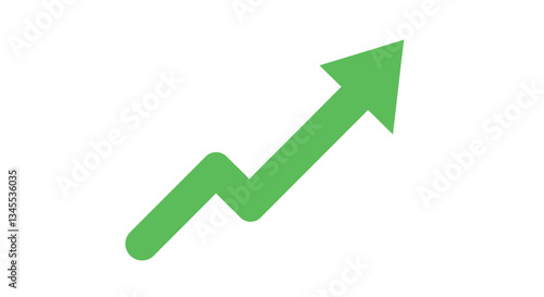 Green upward arrow symbolizing growth in a flat design vector illustration