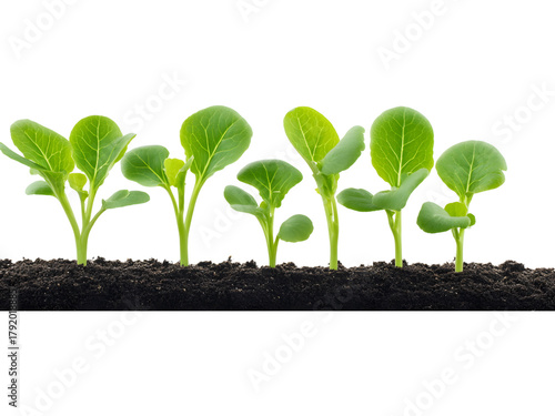Green vegetable seedlings growing in soil isolated on transparent background, perfect for eco and nature visuals..
