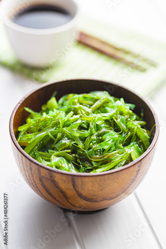 Green wakame. Seaweed salad in bowl