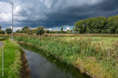 Green water reeds at the Polderbeek, side river of the Durme in Zele, East Flemish Region, Belgium