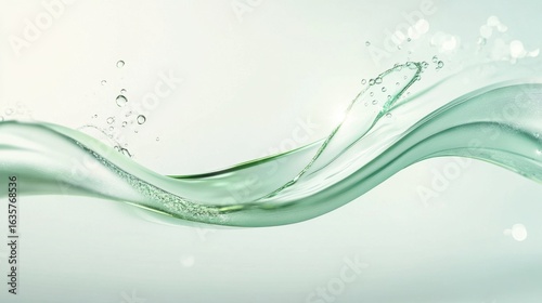 Green water wave splash with drops on light background