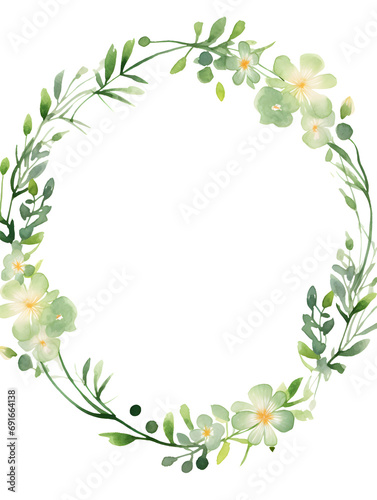 green watercolour floral circular frame with leaves and flowers isolated on transparent background - design element PNG cutout
