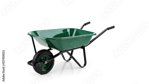 Green Wheelbarrow with Black Frame Isolated on White Background