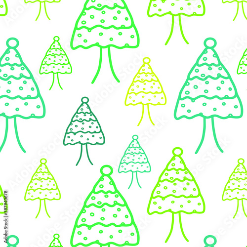 Green white fir tree pine flyer isolated vector illustration. Christmas ornate forest leaflet. December nature plant for postal, postcard, congratulation, napkin, children celebration greeting card.