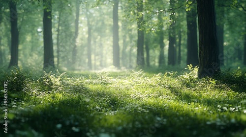 green woods panorama natural landscape : Generative AI